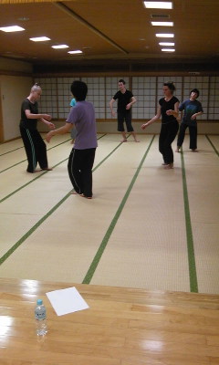 こんな愉快な仲間達とのワークショップ、前半の肉体訓練、マッサージリラックスタイムの後、いよいよ正朔の舞踏稽古。